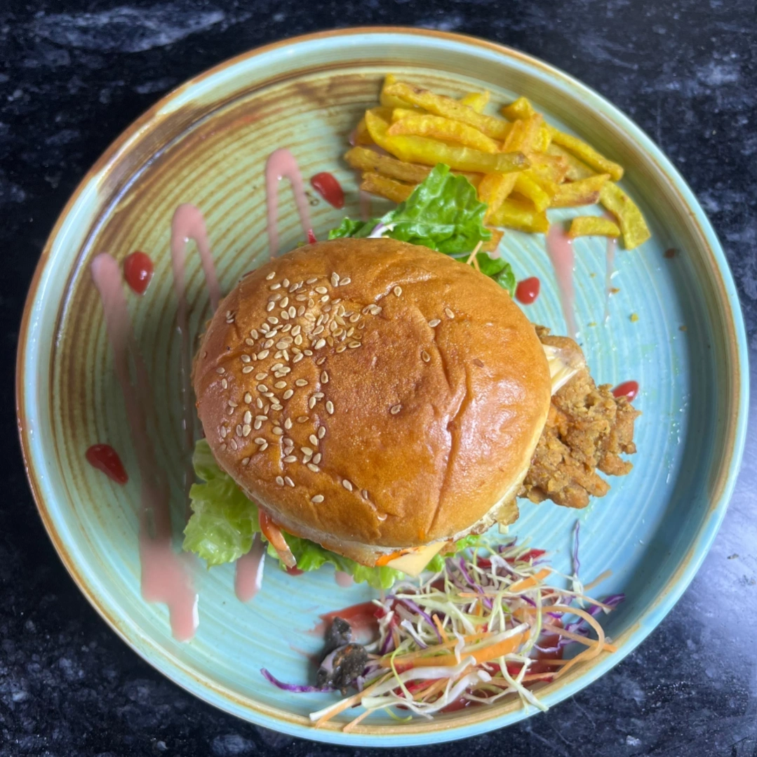 The Sweet Glaze Burger is crafted for those who love a perfect balance of sweet, tangy, and spicy flavors. Made fresh in our Pokhara-based cloud kitchen, this burger starts with a juicy, well-seasoned chicken patty cooked to perfection and layered inside soft, toasted buns.